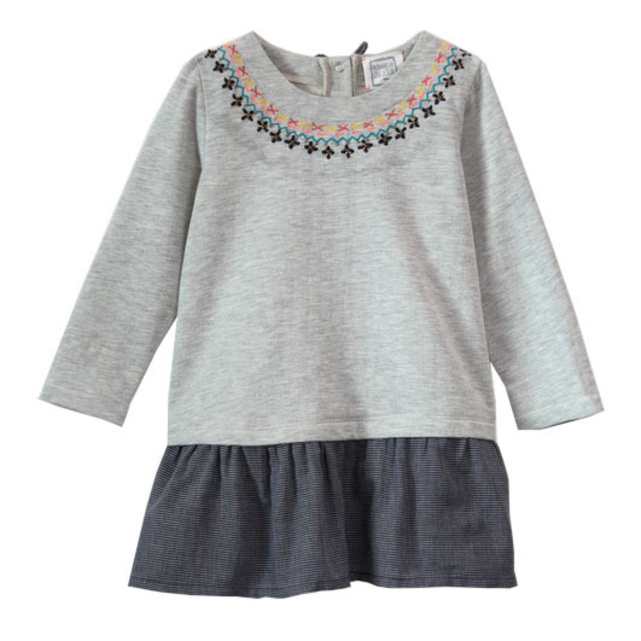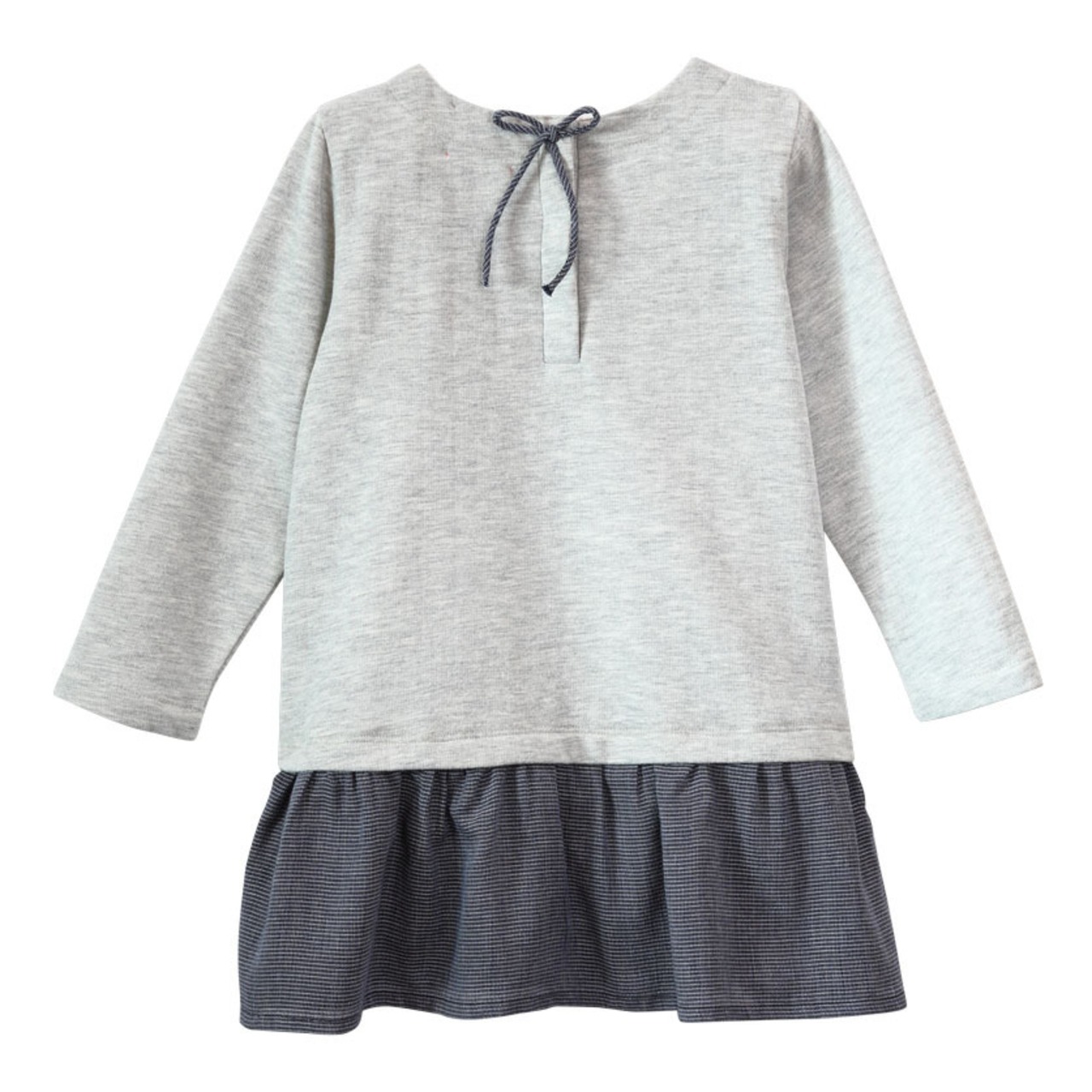 フリースの身頃にスカート部分はチェックに切り替えしたワンピース"BIANCA"。胸元にはキュートな刺繍とパールビーズをあしらっています。
