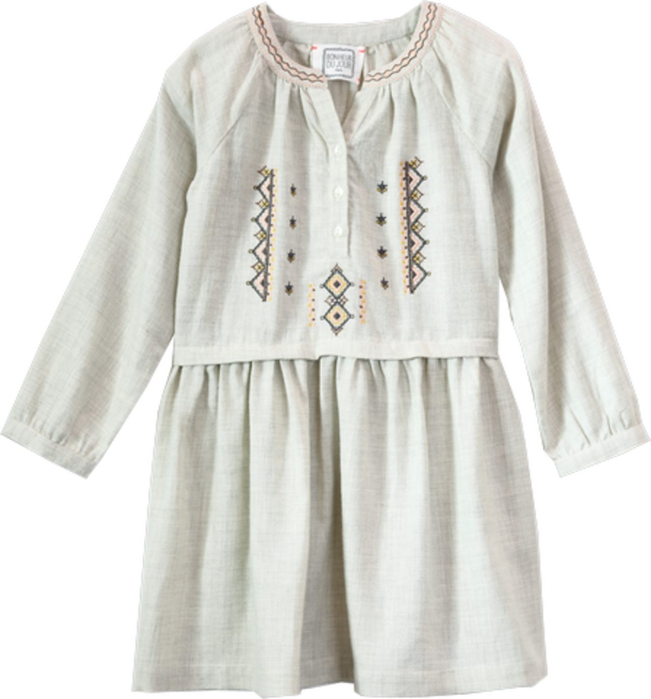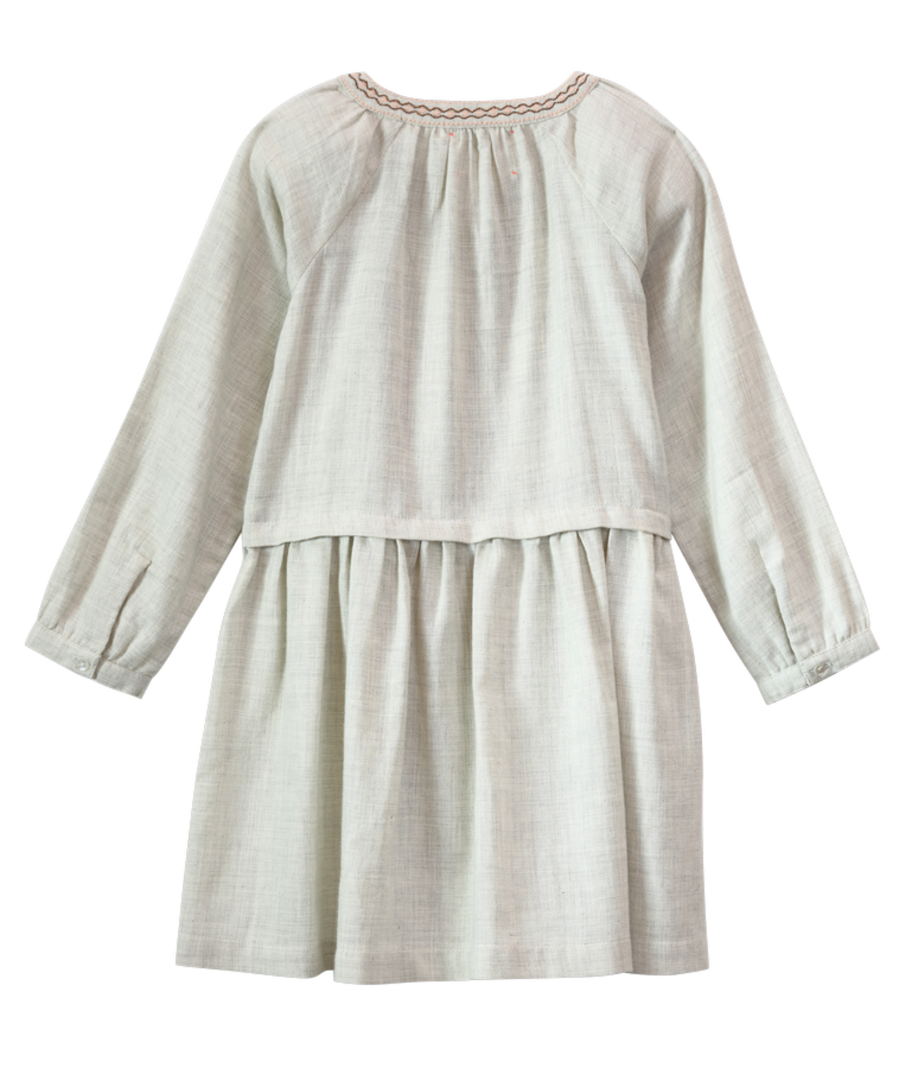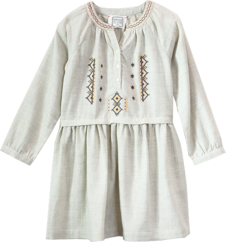 ★85%オフ 9,990円→1,499円★(消費税込み)襟元と胸にフォークロア調の刺繍をほどこし、ゆったりとしたラグランスリーブにウエストにたっぷりとギャザーを寄せた、ガーリーなワンピース "LUZ"のミックスグレー色です。